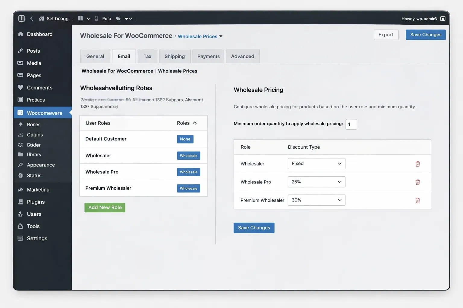 6. Configure wholesale roles and pricing rules in the WooCommerce settings